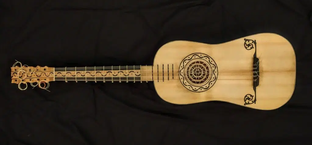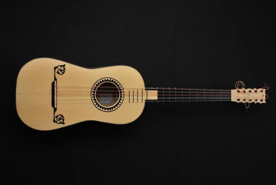 This Baroque guitar is a small fragment of history that comes back to life in the musician’s hands. Inspired by the 1690 model of Jean Voboam, it preserves that aristocratic elegance capable of evoking Parisian salons, court dances, and an era when sound was intimate, precious, made to enchant rather than to amaze.