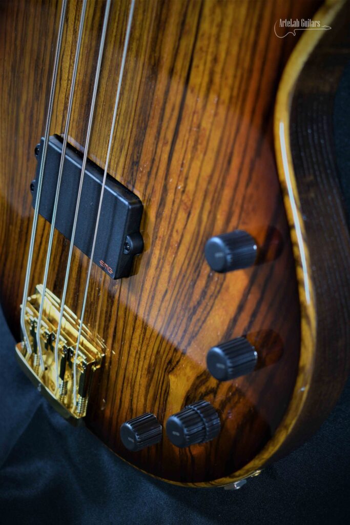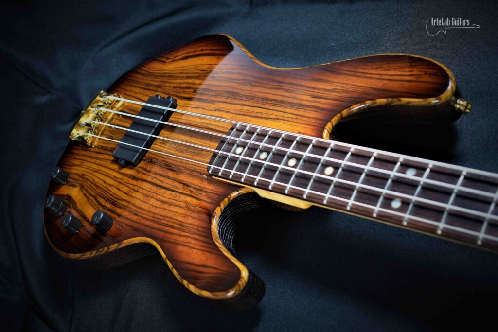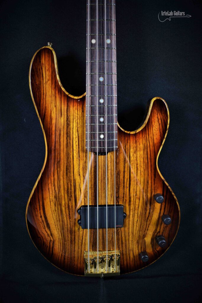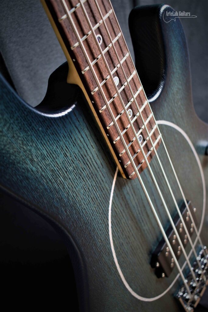 A bass that doesn’t go unnoticed. Custom-made for those seeking a defined, personal sound without compromise, this instrument blends tradition and innovation in an elegant yet aggressive body. The deep finish of the top, sculpted in the iridescent reflections of selected exotic woods, reveals the unique identity of each individual piece at first glance.