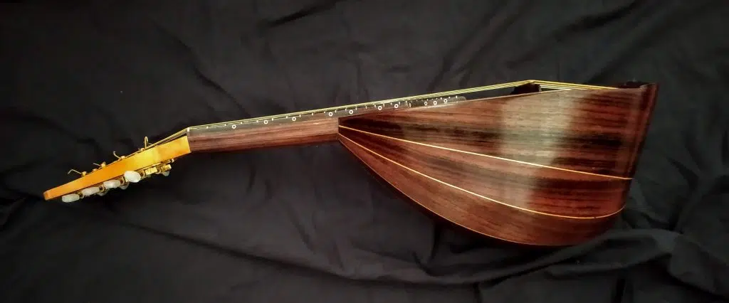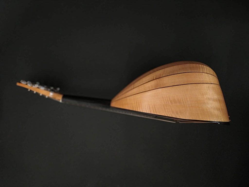 The modern version, on the other hand, enlarges the body, extends the fretboard, and embraces the sound projection required in contemporary halls, with the option of a slight arching to increase playing comfort.