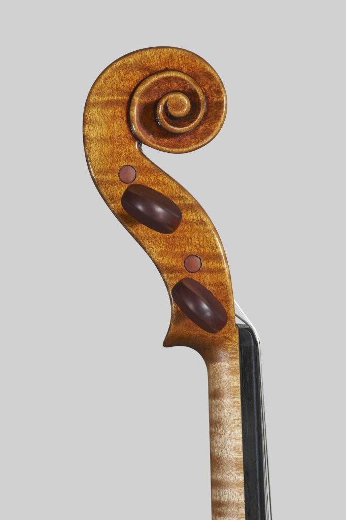 This violin carries a proud and untamed temperament. Its bold forms, refined by the luthier’s art, seem to contain a primordial force pulsing beneath the warm varnish.
