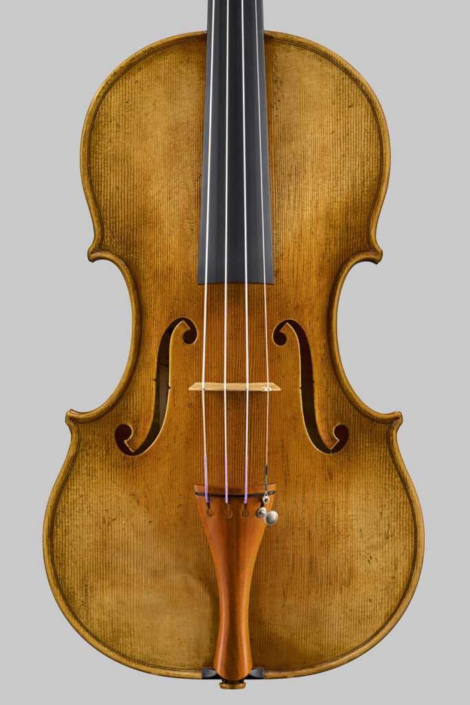 This model, inspired by one of Guarneri del Gesù’s most celebrated masterpieces, carries with it the restless and free energy of the Cremonese master’s late period.