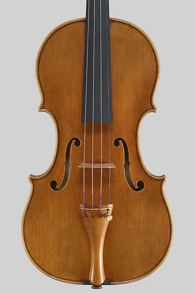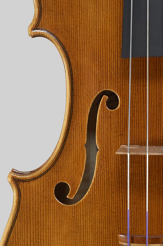 The instrument combines the firmness of the past with a contemporary attention to detail, offering a gentle, melodious, and surprisingly expressive timbre. The amber varnish with dark shading completes its decisive character, giving it a visual presence that does not go unnoticed.