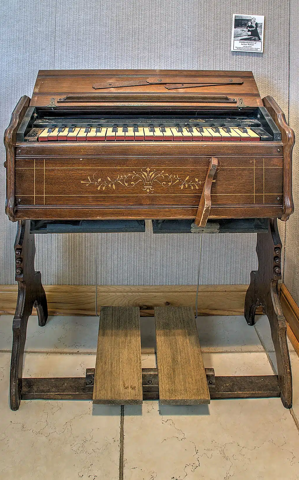 È munito di una tastiera e di due pedali che servono a generare per mezzo dei mantici il soffio d’aria determinante la sonorità.