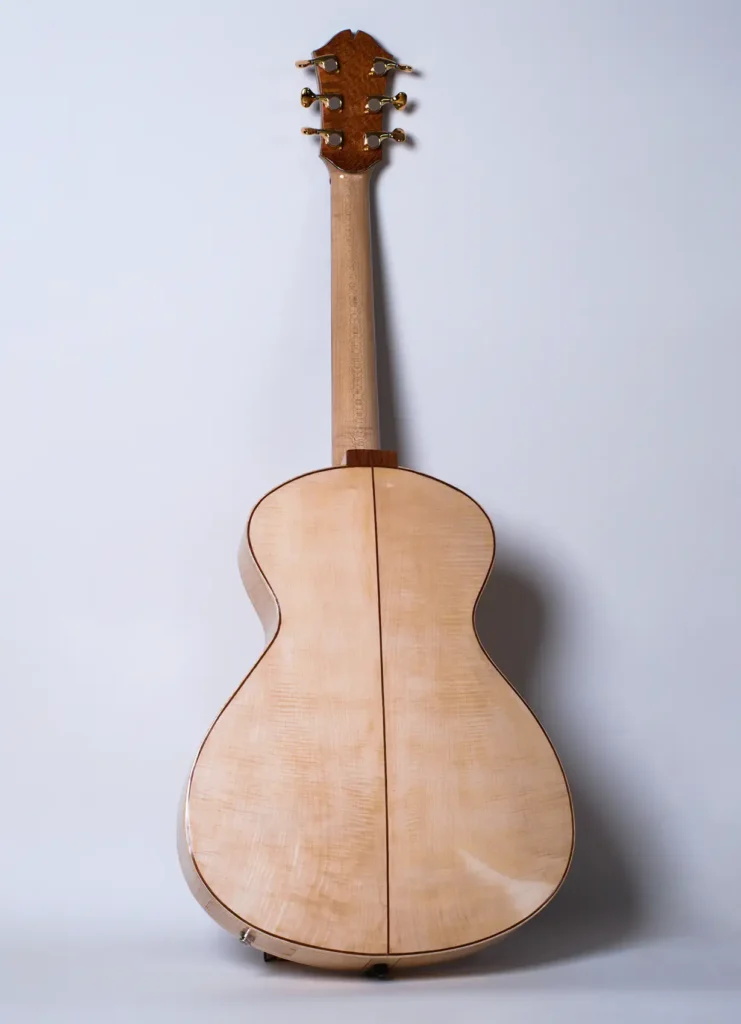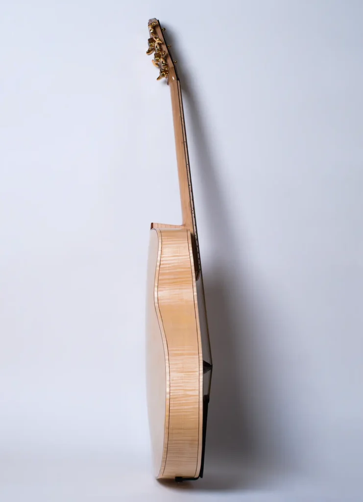 L’amplificazione è discreta, integrata con eleganza fino a scomparire alla vista, permettendo allo strumento di mantenere tutta l’identità di una acustica pura. Il suono, rispetto alle sorelle acustiche della gamma, è più intimo, controllato e trasparente, con una chiarezza che conquista chi cerca profondità senza esuberanza.