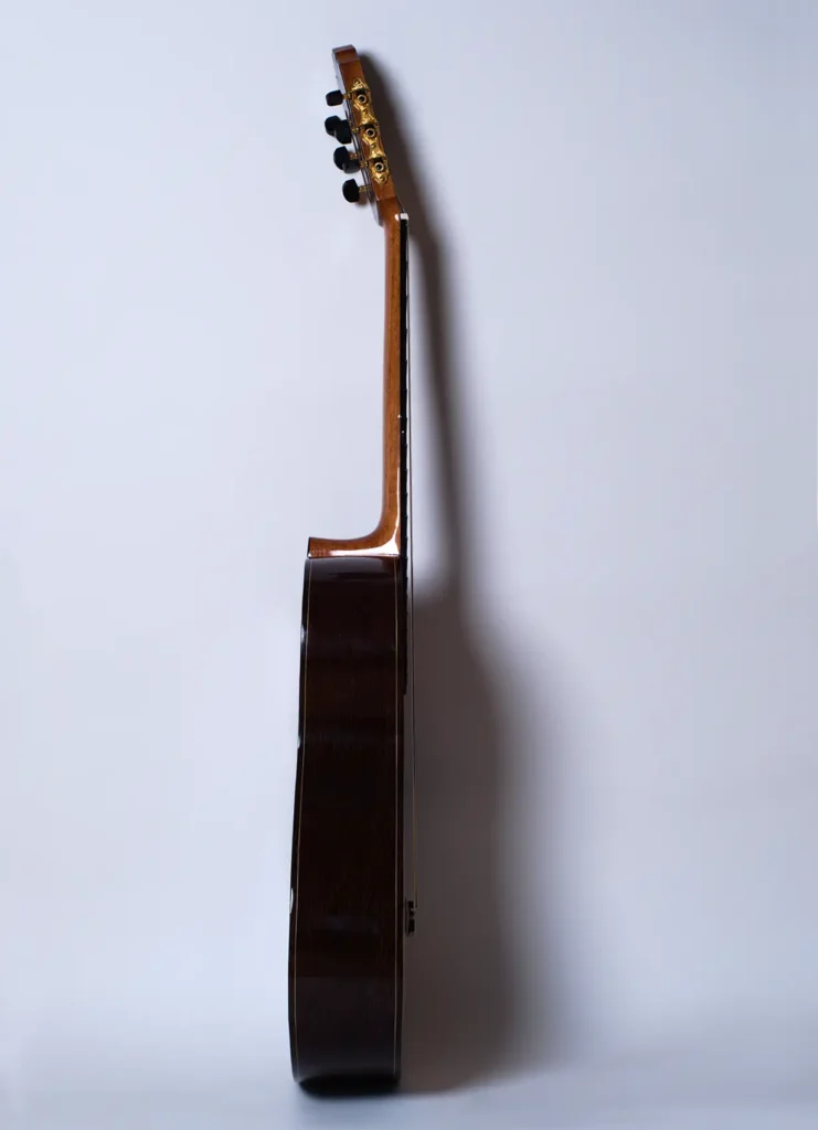 Questa chitarra classica è pensata per chi cerca comfort e leggerezza senza rinunciare alla profondità timbrica. Grazie all’incatenatura esclusiva Sail Guitars, priva della tradizionale traversa sottobuca, la tavola armonica vibra liberamente, restituendo una risposta dinamica e naturale, con una proiezione sonora che smentisce le apparenze.