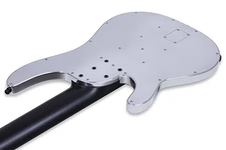 Il Django Pentaflex è il risultato di un’estetica estrema e una funzionalità sonora all’avanguardia. Costruito da un blocco pieno di alluminio aeronautico, questo basso incarna la filosofia Alusonic: innovazione radicale, artigianalità e visione sonora. I pickup proprietari Alusonic Pentaflex Alnico5/Neodymium, abbinati a un selettore a 5 vie, offrono una palette timbrica estesa, che spazia da profondi growl moderni a dettagliate articolazioni dinamiche, ideali per il live, lo studio o l’uso sperimentale. Con la sua costruzione completamente metallica e il manico in acero rinforzato, è uno strumento creato per durare e stupire.