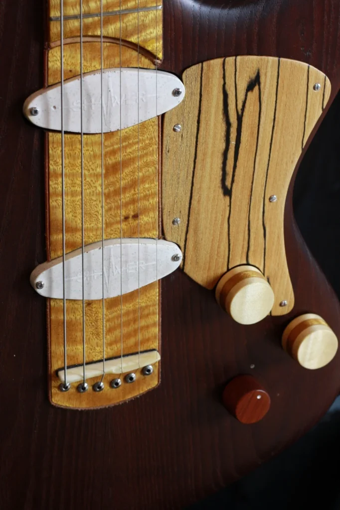 La F GUITAR è la risposta di ShiverGuitar alla domanda più affascinante della liuteria moderna: è possibile far parlare davvero il legno? La sfida è stata affrontata con visione e sperimentazione, inserendo un pickup altamente microfonico sotto il legno, dietro le corde. Il risultato è sorprendente: una chitarra elettrica che riesce a catturare la voce del legno, una vibrazione autentica che arricchisce il timbro senza sovrastarlo.