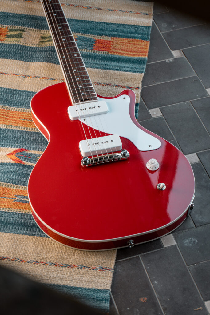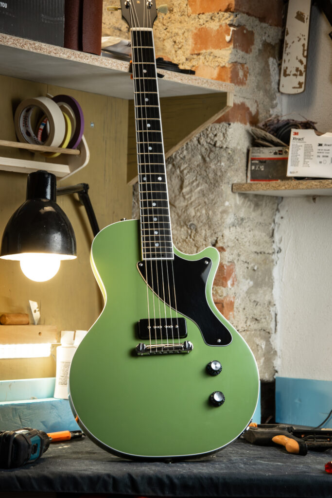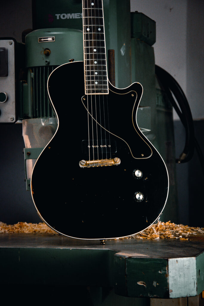 La Primo Solid Body è la prima nata della visione artigianale di Nisio Guitars, e si presenta come una chitarra elettrica essenziale, elegante e potente. Un design che guarda alla Les Paul Junior ma ne reinterpreta le forme con delicatezza, aggiungendo curve più dolci, un binding sagomato e uno spessore ridotto per una maneggevolezza sorprendente.