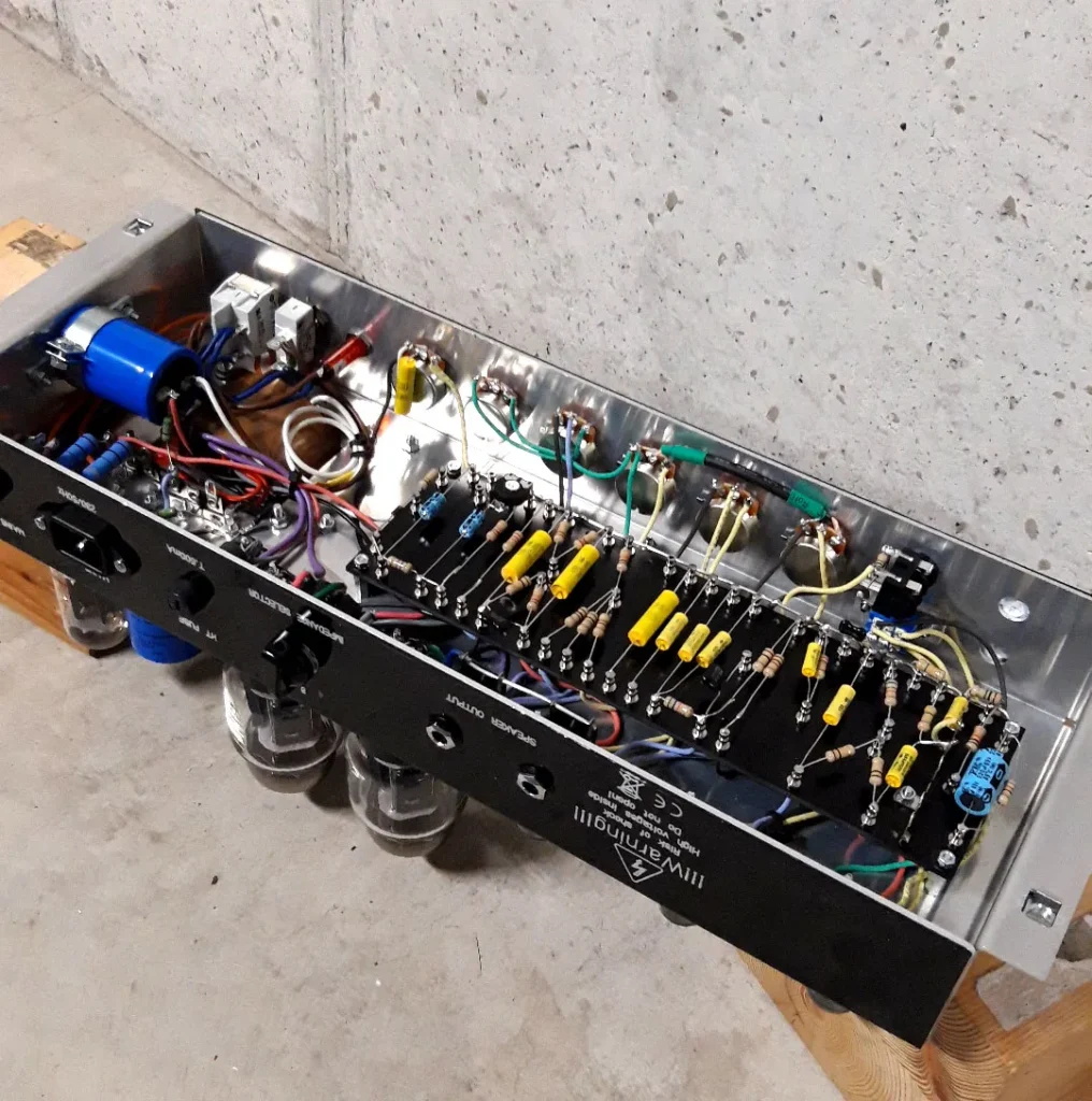 Ispirata alla mitica JTM45 ma rivisitata con competenza chirurgica, è una testata che non si limita a “suonare bene”: respira, reagisce, si piega al tocco del chitarrista con una naturalezza che solo una costruzione point-to-point e componentistica selezionata possono regalare.