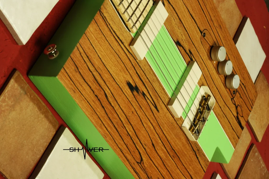 La Tile è una chitarra insolita, unica, quasi un omaggio alle Cygar Box Guitar e al videogioco Minecraft. Combina corpo in TouliPier con top platano spalted, manico in acero roasted e tastiera acero roasted. Pickup ShiverGuitar e finitura ad olio, rendono questa chitarra dal look originalissimo e dal suono dinamico.