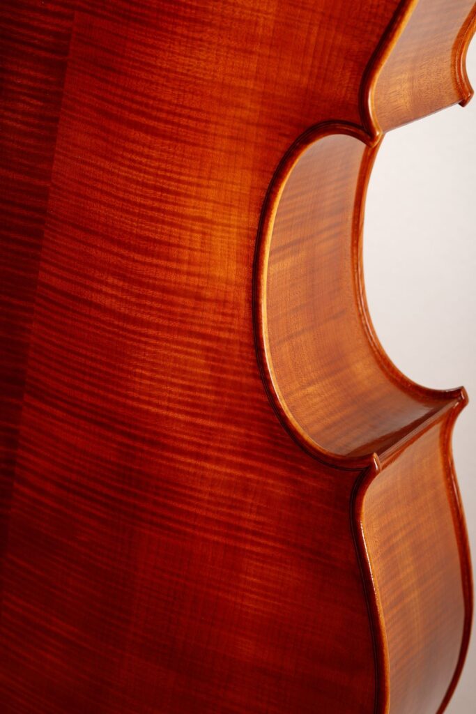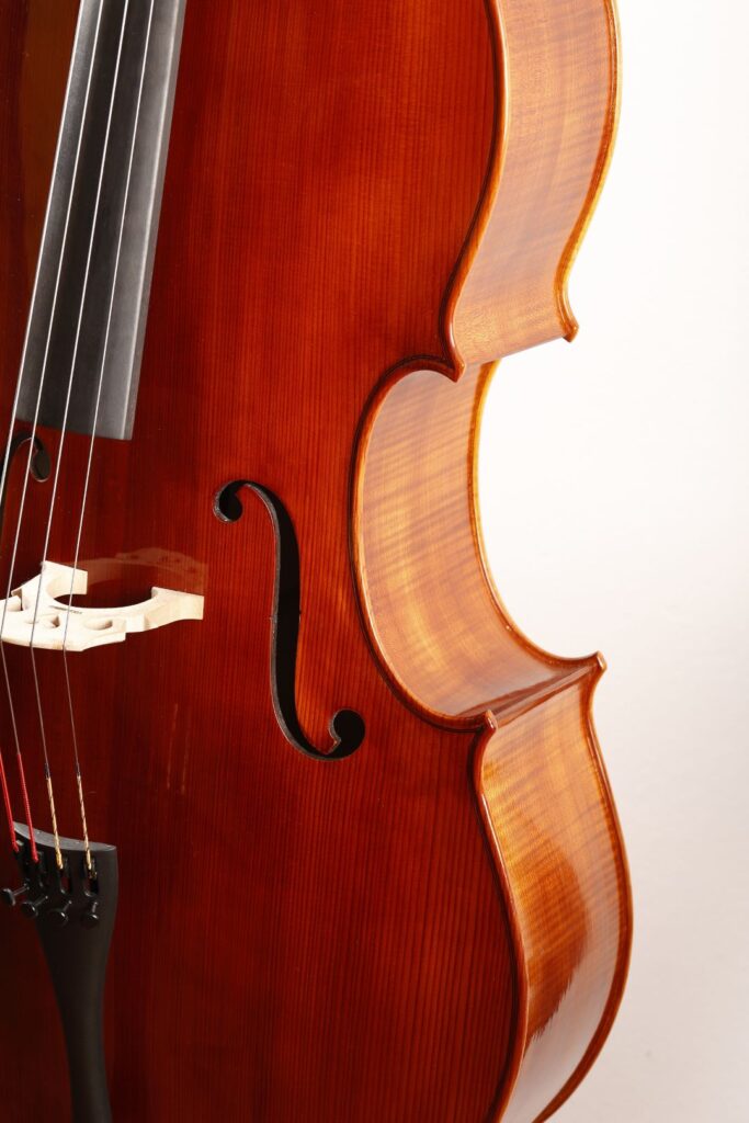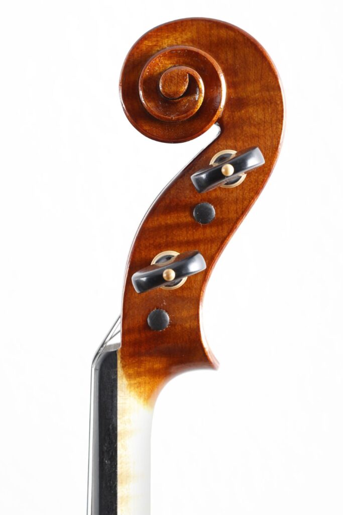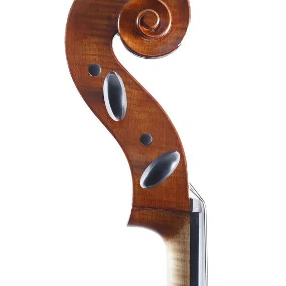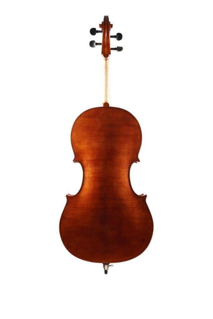 Uscito dal laboratorio come un piccolo tornado – elegante fuori, furioso dentro – questo modello ispirato a Goffriller porta con sé tutta la teatralità del grande violoncello veneziano: curve importanti, fiammature da togliere il fiato e quella vernice bruno-rossastra che sembra fatta apposta per farsi notare anche al buio.